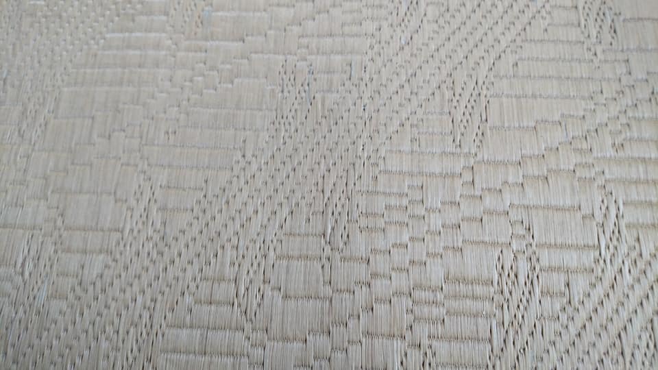 国産畳表の展示会に勉強して来ました。国産も種類が多くて材料の見方、生産者に寄って色の違いなど勉強に。国産は、やはり色の艶が良いですね。