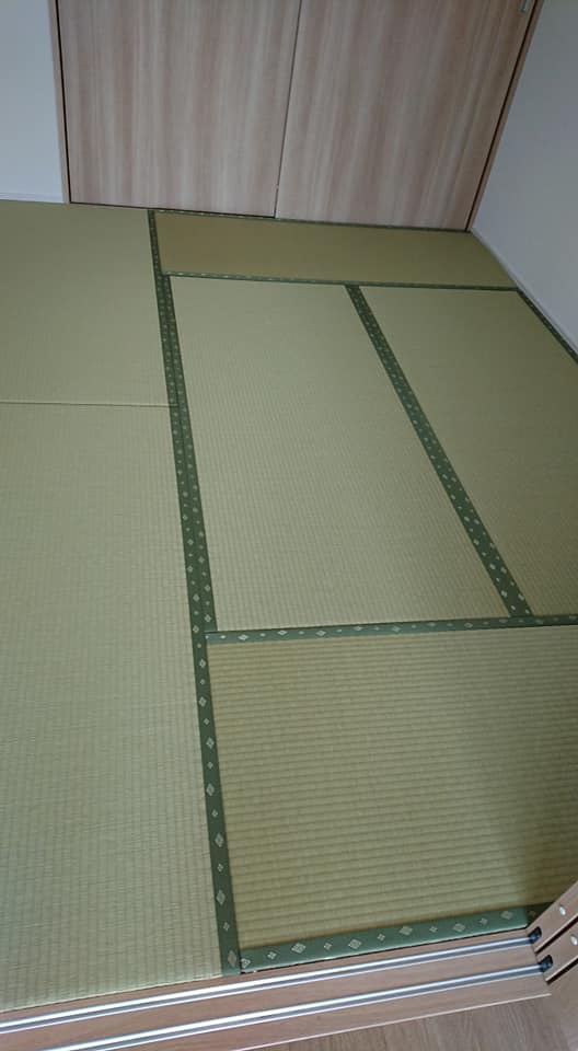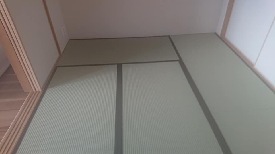 畳は敷き終わるまでが戦いです。メーターモジュールは、通常の6畳間よりサイズが大きいので広く使えます。しっかり畳が入り、お客様には大変、喜んで貰えました。ありがとうございました。