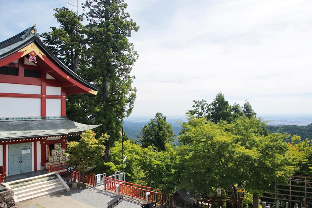 バスを利用して、ケーブルカーで山頂、またそこから山道登り。昔からある宿坊を通り、1000段ある石段を登り...本殿でした。まるで、天空の神社で関東平野が一望出来ました。山行くスタイルとトレキッングシューズではないと中々厳しいです。
