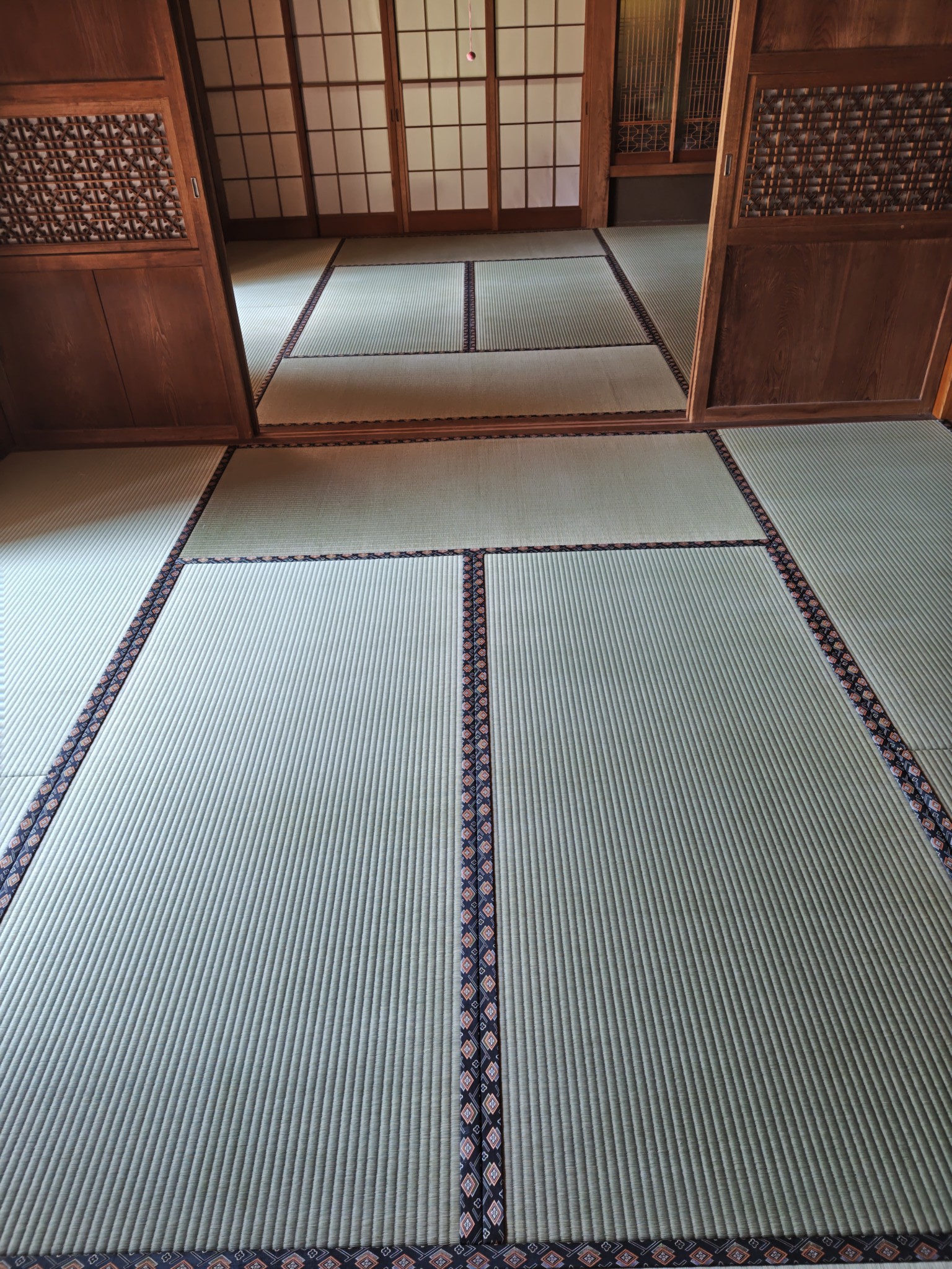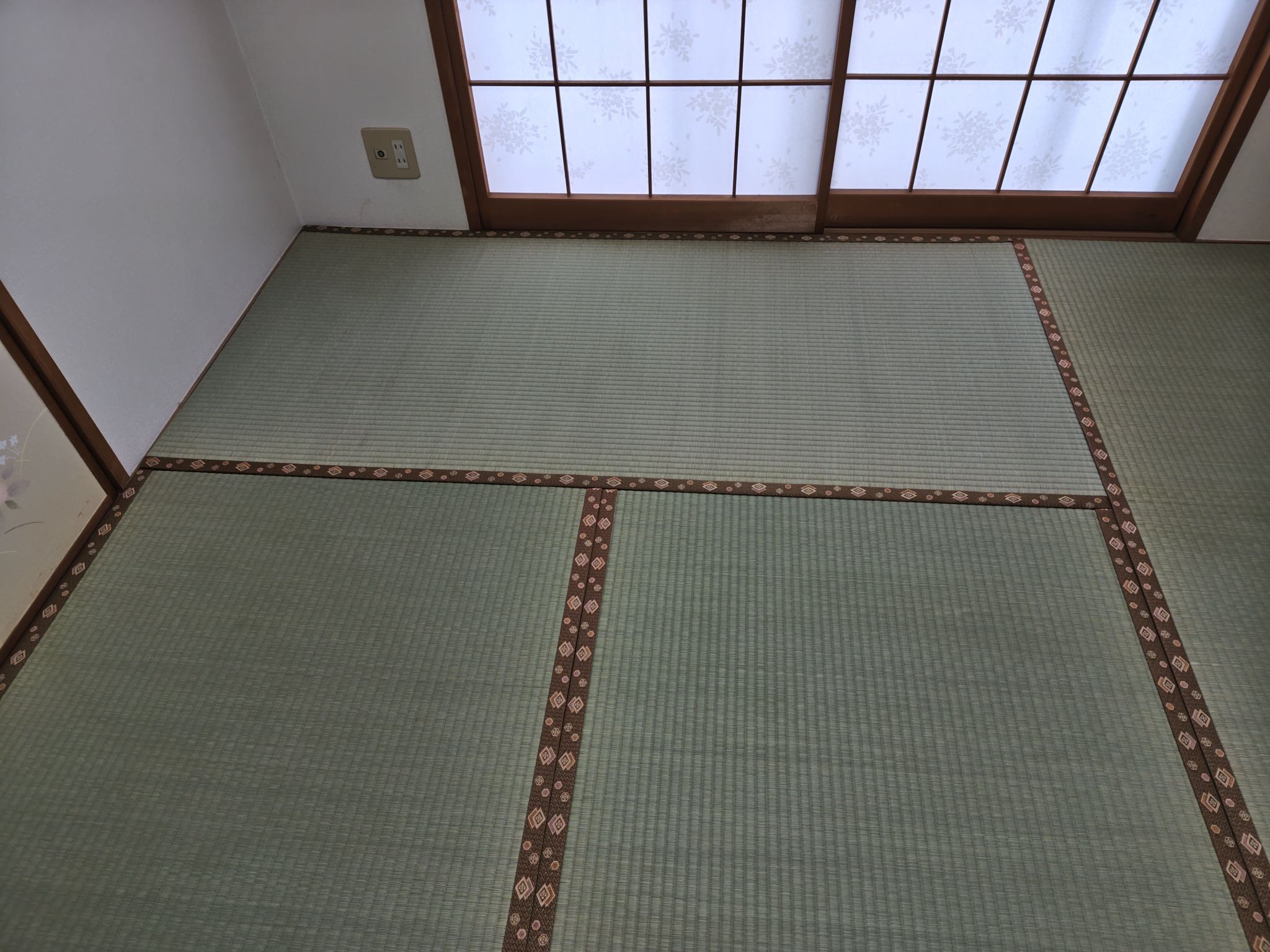 国産八代産の表畳を敷きましたが、部屋が明るくなり「気分的に明るくなった!」と喜んで貰えました。ありがとうございました。