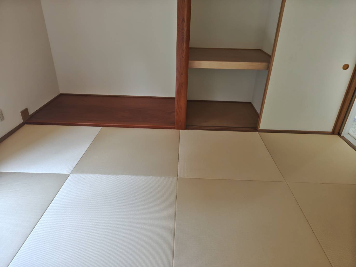 最近は、フローリングだけのお部屋が多い中ですが、今回、お客様の要望で施工させて頂きました。和紙の畳表は、日焼けはしなくダニ、アトピーの心配もいりません。
